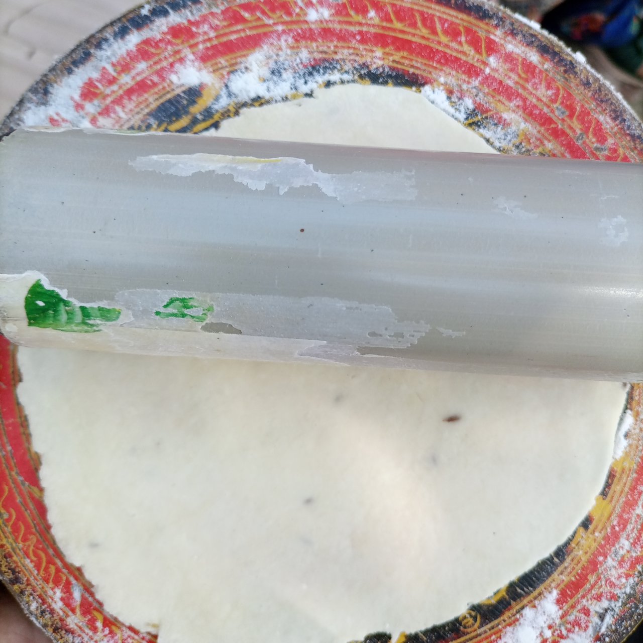 The flour was ready and roasted cumin seeds were added to it so that the dough would rise even more and the eater would keep eating. Now, it was made into small, round, ball-shaped patties so that they could be rolled out thinly with the help of a rolling pin and used.