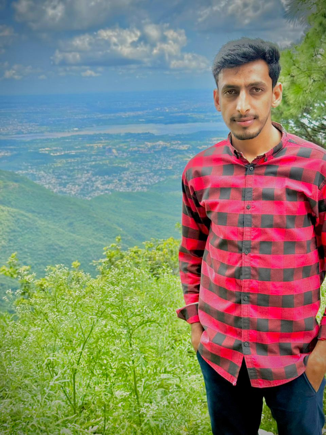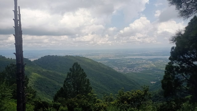 We started our journey and started journey to Margar Hill. We covered a distance of about 10 to 15 minutes, and we had just reached halfway to the hill. There is a point where we stood and took our photography because we could stand there and see the whole of Islamabad. This is a point from where you can see the whole of Islamabad, Margalla Dam, and all the big restaurants and malls.