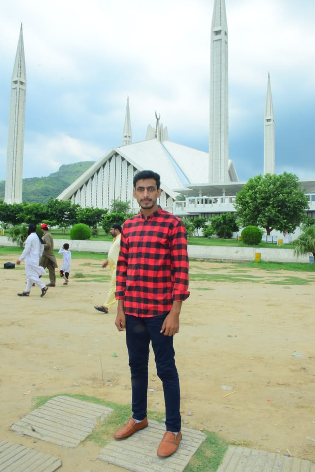 After preparing for a journey of about an hour and a half, we finally reached Islamabad. We had to visit Faisal Mosque, so to visit Faisal Mosque, we entered Islamabad and put the location of Faisal Mosque on our mobile phone, and through its location, we reached the famous and historical mosque of Islamabad, Pakistan, which is just below the Margalla Hills.