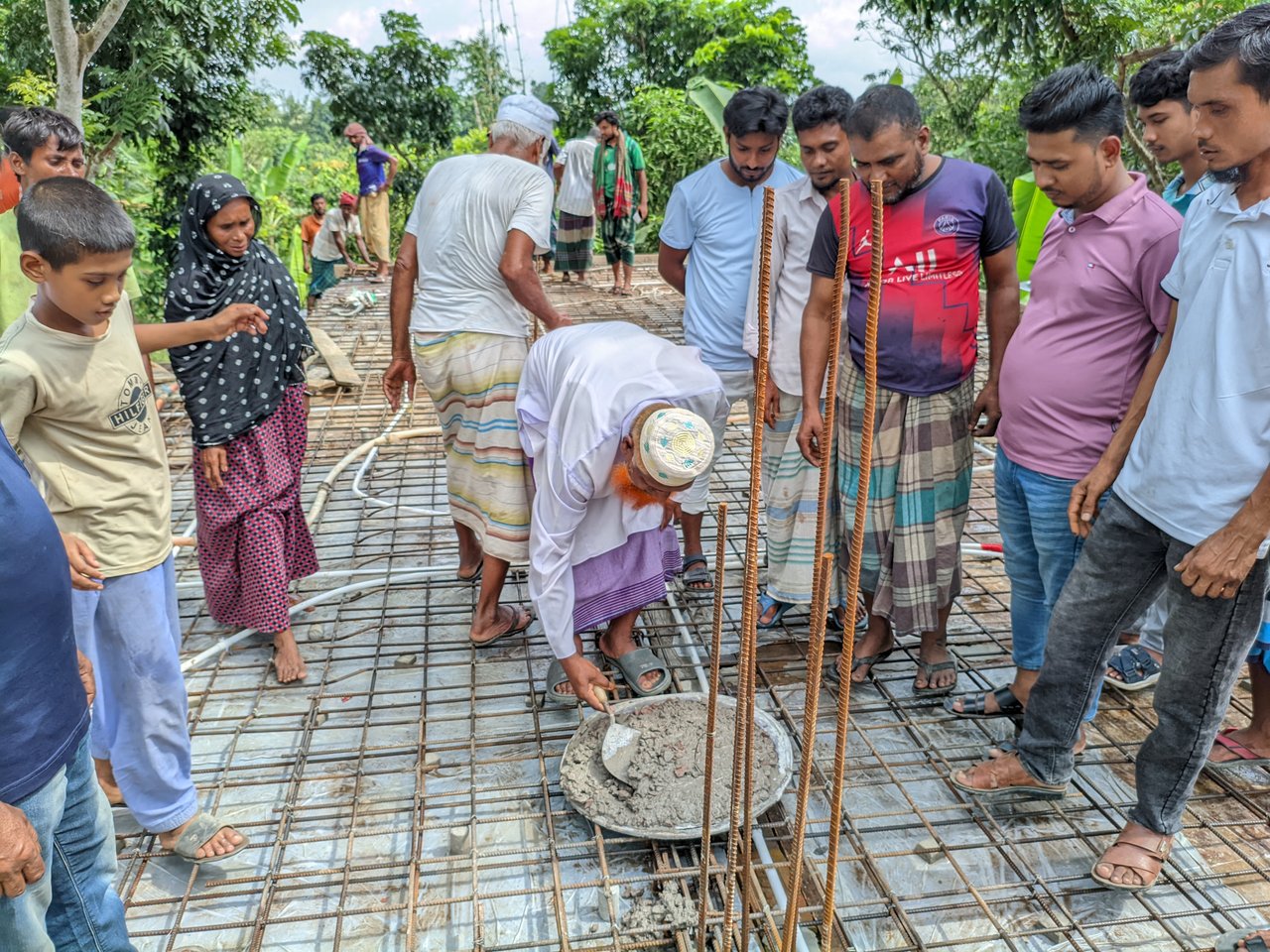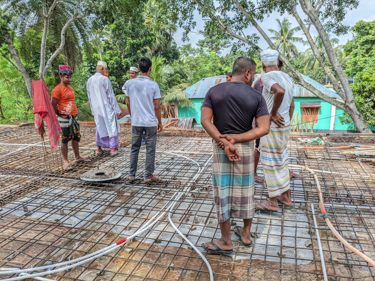 When I got up, I saw that many others like me had come here to pray and inaugurate the roof. I saw that all the activities for the support were finished, the lower rods were tied, and white pipes were laid for the electronics lines.Then I looked down from the roof and saw many people.