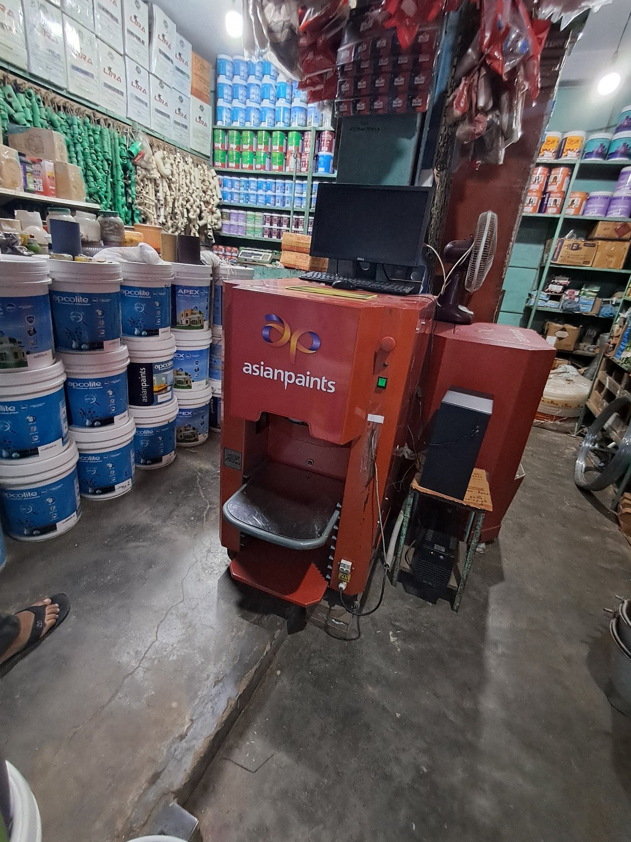The most popular and most preferred thing here was that custom colors could be made here. We had seen in various videos that people make their own colors, just like that, there were two machines here to make their own colors and there was a computer on top to operate it, with which they can make custom colors according to people's preferences