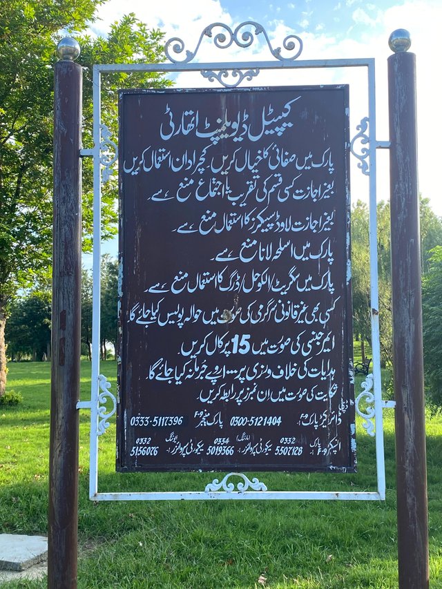 The first picture I captured was of the main board outside the park gate This board proudly displays the name of Fatima Jinnah Park reminding visitors that they are entering one of the most famous recreational spots of Islamabad The entrance itself creates a welcoming impression for everyone who comes here
