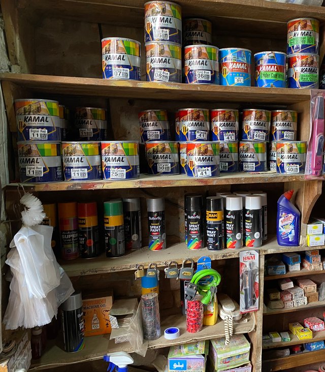 When I entered the shop the first thing that caught my eyes was the nails section. There were all kinds of nails from small to large size. All kept in small boxes and jars in good order. The shine of iron nails looked beautiful. The owner told me which one is good for wood work and which one for wall use. Prices were also fair and better than city shops. Even though the shop is small but the quality of every item looked fine.