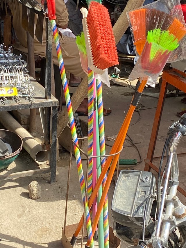 In the last corner I found tools for farming and different cleaning brushes. There were brushes for rooms and for outdoor cleaning. The farming tools were kept neatly. I liked this part because it shows how the shop helps both home users and farmers. The brushes were colorful and strong. My visit here was really nice and I felt proud that such a small shop in our village have so many things for daily use.
