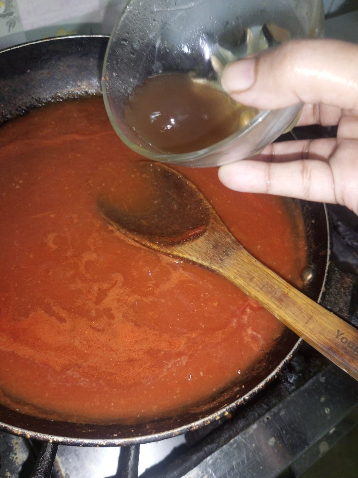 Slowly stirring with a spoon, I added half a cup of vinegar and cooked for seven to eight minutes.