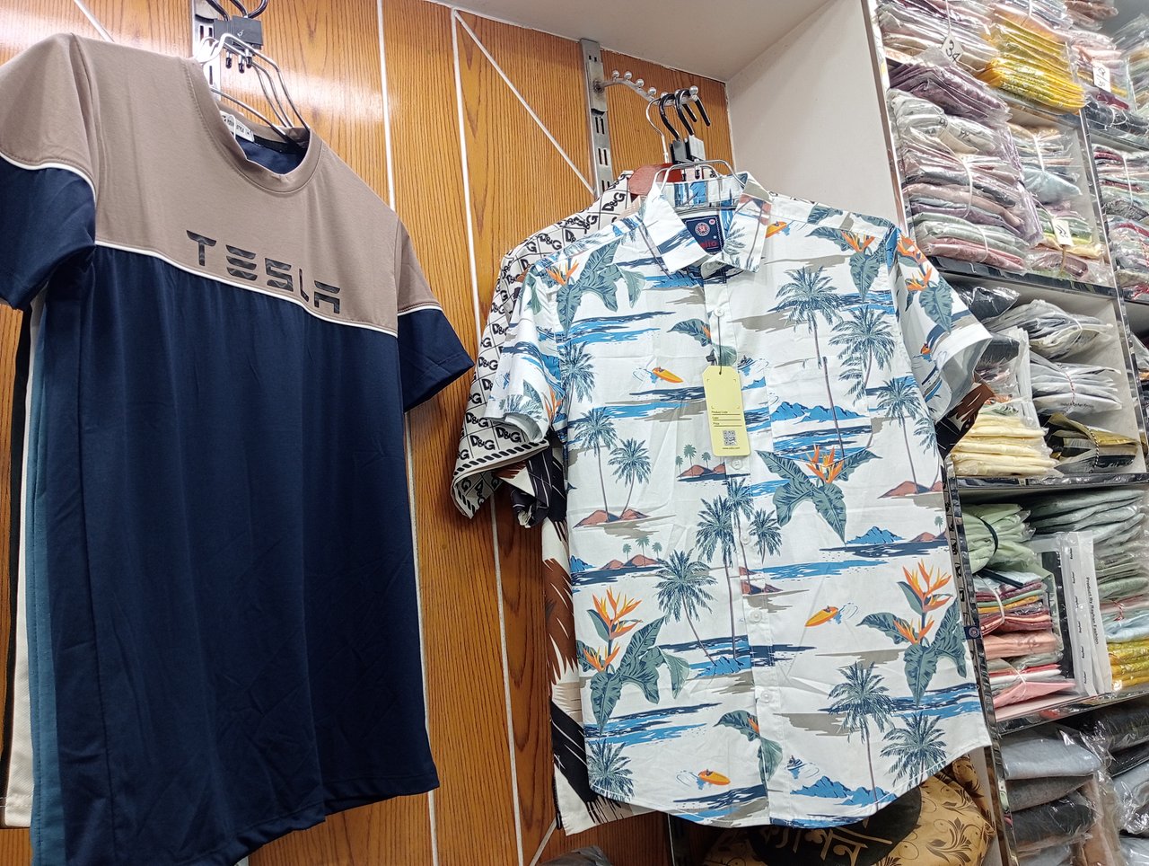 There are different types of shirts available in their shop, which When you go to their shop, you will see that there are different types of stylish shirts for everyone from small children to young generation to old generation. They have arranged these shirts very nicely on the display so that customers can easily buy the shirt according to their choice and their shirts are also good in price and quality.