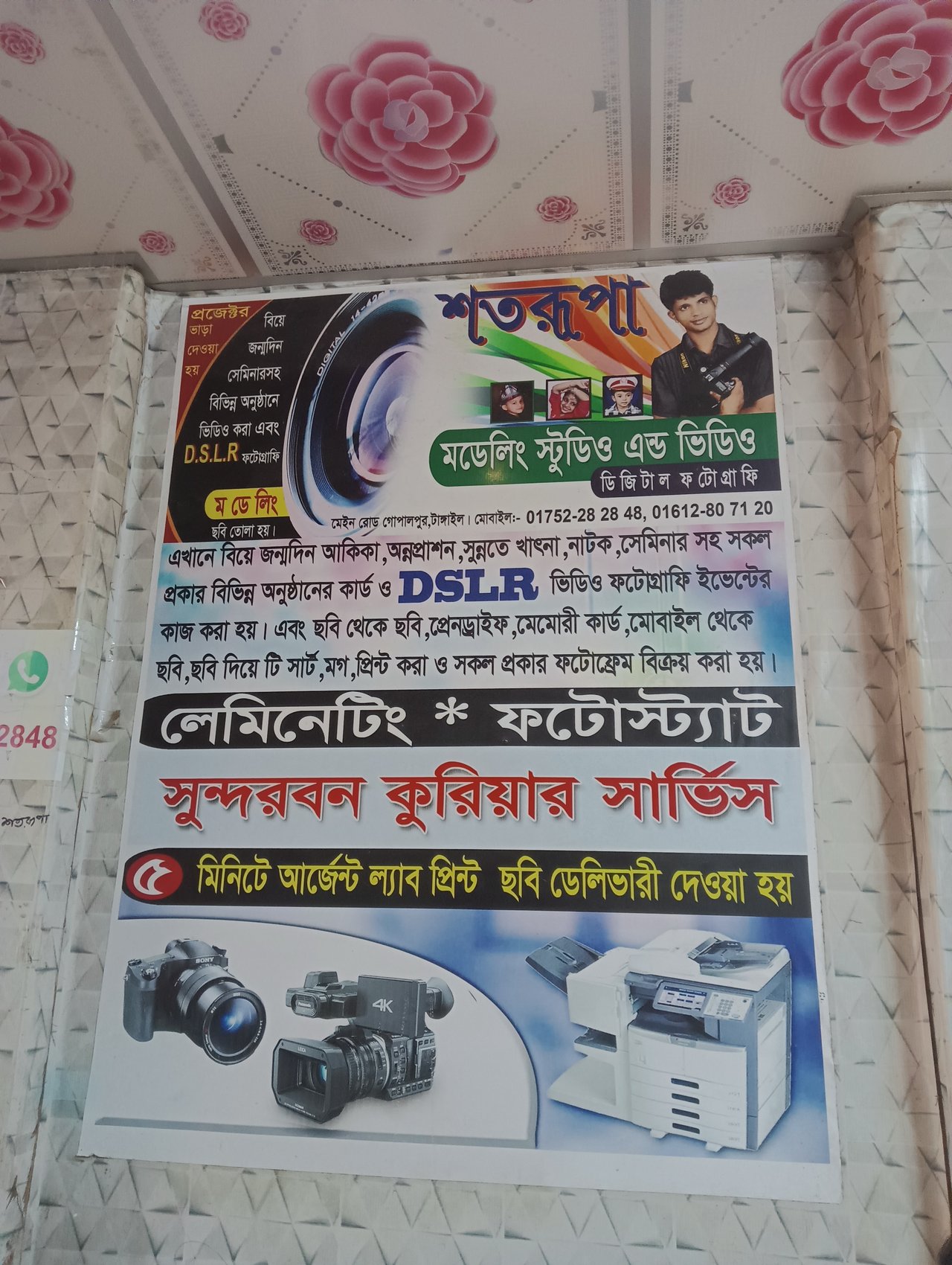 Today I am going to review a studio in our Gopalpur city. Where I have already reviewed a picture, even the full name of the studio is Shatrupa Studio, located in our Gopalpur. Here, video and photo editing work of various types of events is done, even pictures are captured in this studio and the pictures are taken out within five minutes. Shatrupa Digital Color Lab Studio does video laminating. Video recording and picture capture is done by DSLR camera in any social event. Sundarban courier service and parcel service are provided here.