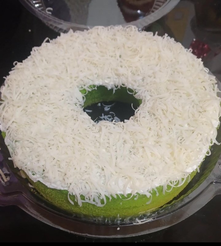 This is a cheese sponge cake that I bought from Dahniar. Dahniar's sponge cake is just right for me, so I'm so satisfied to be able to enjoy this delicious cheese-topped sponge cake. The sponge cake is huge, and I can't eat it alone, so I'll enjoy it with my husband. Besides the cheese-topped sponge cake, Dahniar also makes other sponge cakes, such as this pandan sponge cake.