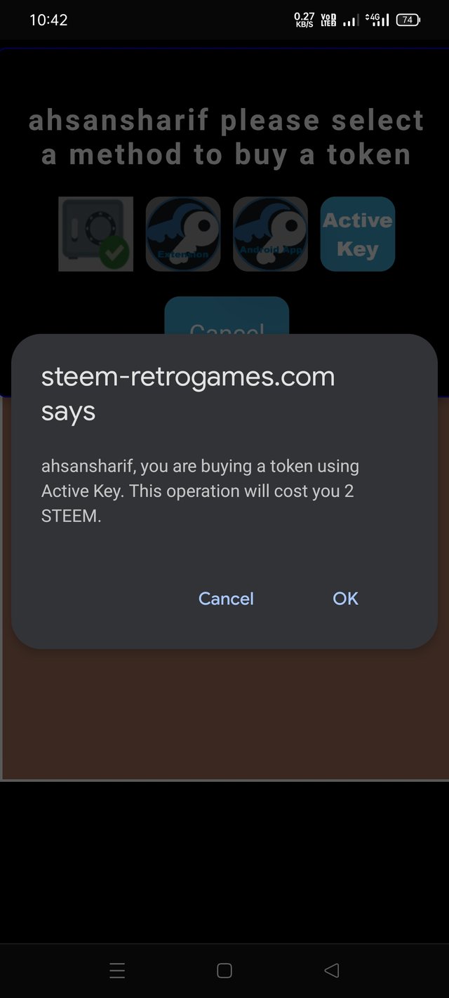 As soon as I opened it, I wrote my username. After writing my username, they asked me which method I wanted to pay through. So I chose the private active key. After choosing that, I entered my private active key, thanks to which I got a token to play one game in exchange for two steems.