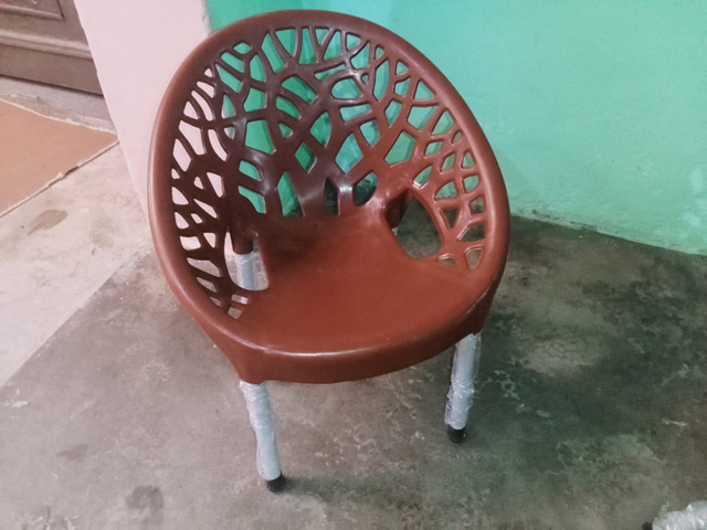 Then we saw some things and there were many different designs, some of which we liked this design and this color, but when we saw it, he explained to us more about the method of how to assemble it and how to make it, so we bought four chairs and a table and I then started assembling it. He said, "What I had was four legs of this place, which are separate and inside the table plate, some were made of plastic, and those legs of the table were passed through it and their lids were made on top of it.