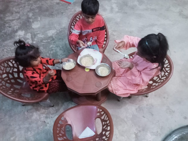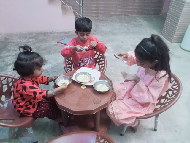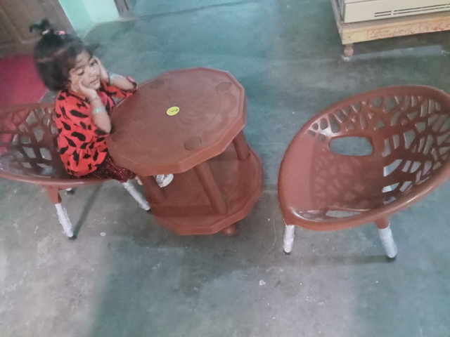We could put something on top of it and we could put something inside it. The table looked like a very good thing. Its color was also very good. Its design was also very good. Similarly, we bought four chairs. It was just like a dining table. And then when the children saw it, they were very happy. It was a very new and good thing for them. After that, they had a noodle party and ate noodles together sitting on it and enjoyed it a lot.