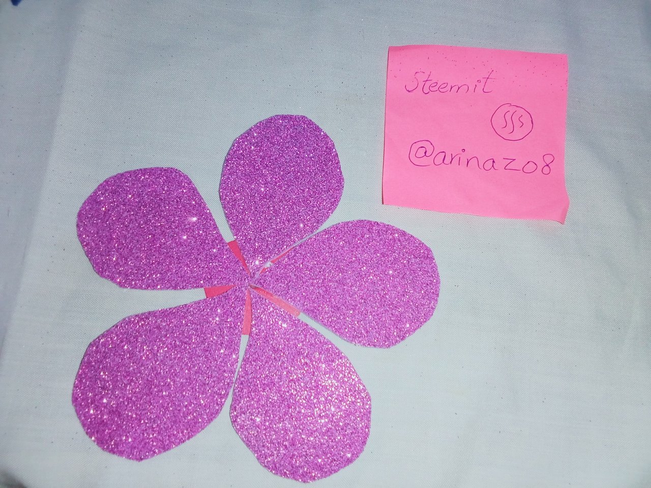 Now after making the flower, I have cut out three long lines using a pink forming sheet and now I will glue these lines to the back side.