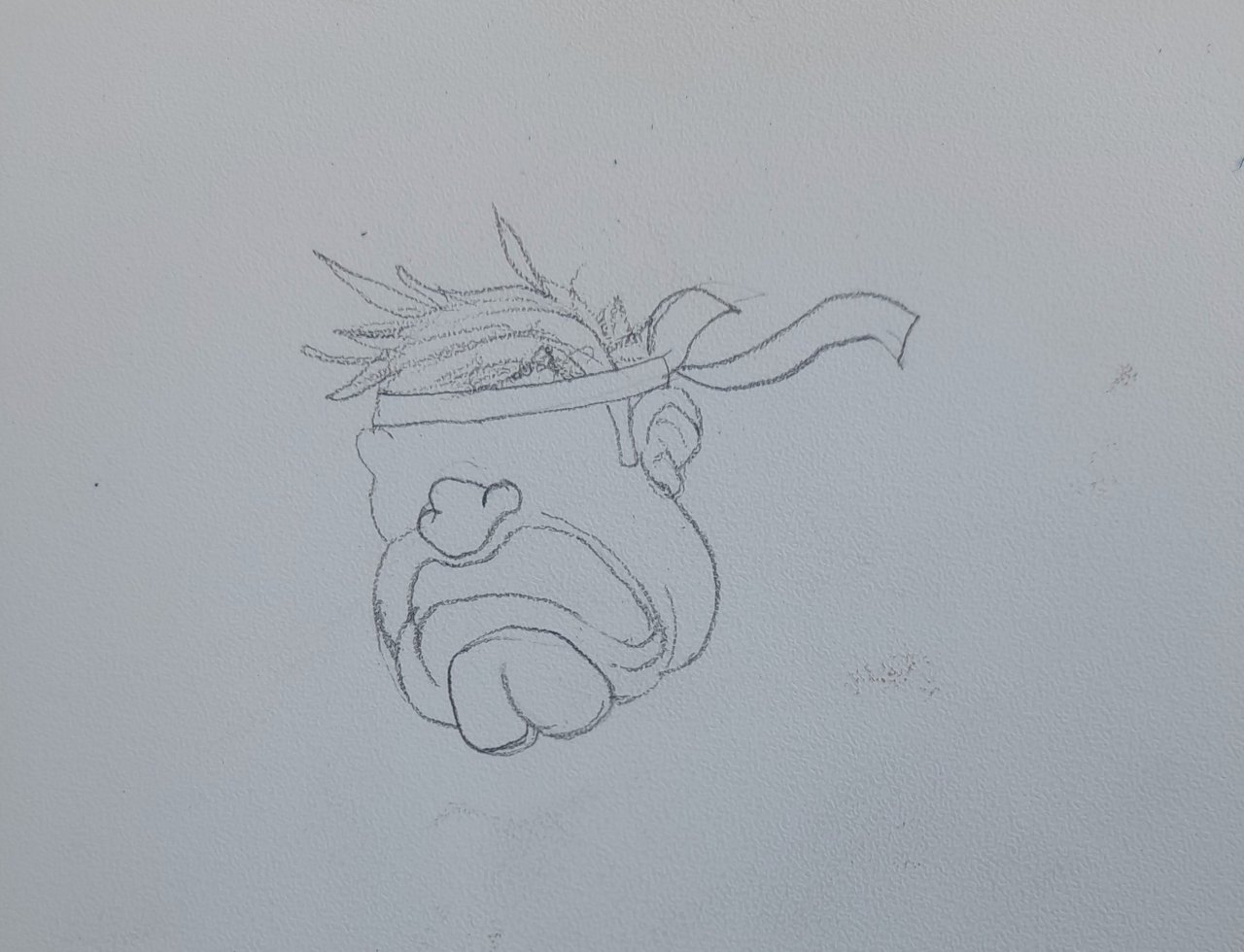 I began by drawing the head and face of the boxer. I started with the headband, then the hair on his head, followed by the sketch of the entire face. I thenthen sketched the eyes, the eyebrow, the nose, the big mouth, the teeth and the ear.