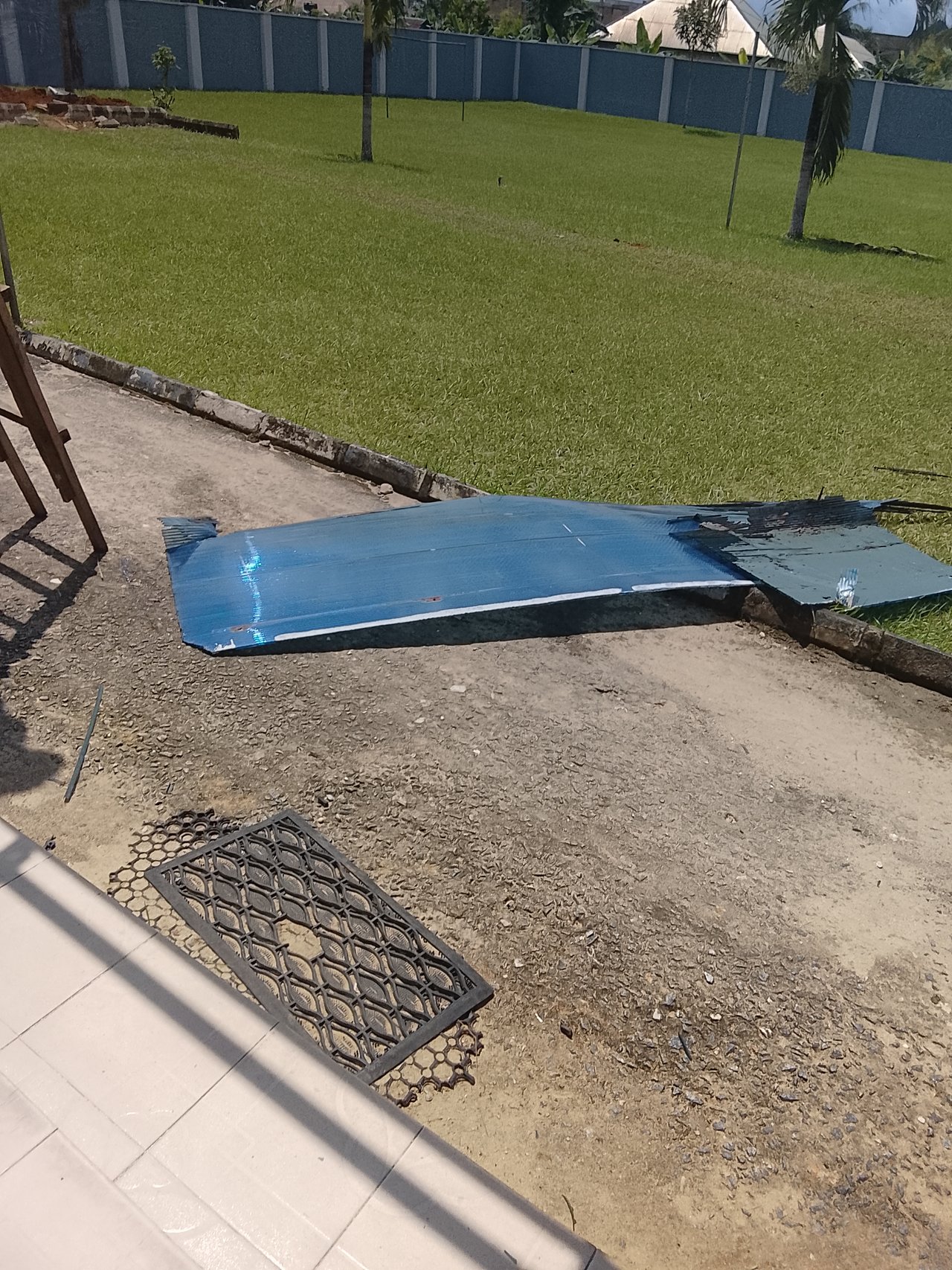 ...But unfortunately the required materials to install the new shade wasn't available so we had to do the painting instead making it look as if it was new, so I began my own part of the work by scrubing the rust off it, when I was done my dad had to paint it.