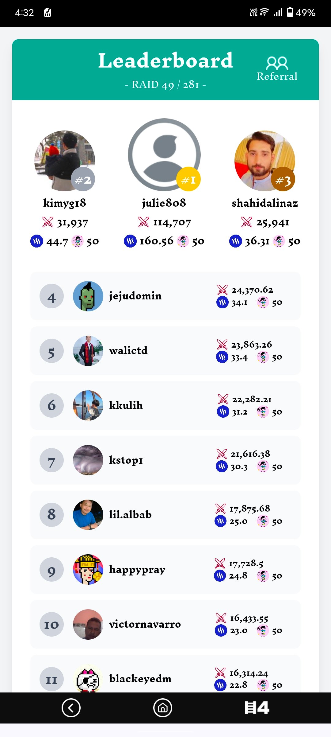 After that, I played the game well and then added it. My rank was 11 and I had to claim points for the daily quests I had completed. I had to play the game well and click on the attack option to get the points for the cards I had chosen. Now I had to claim the points for the cards I had chosen.I had 154 points. I bought one guard each so that I could play the game. After that, I went to the leaderboard and compared everyone's rank. My rank was quite low, and here is the one in the first three positions. I have attached a screenshot here.