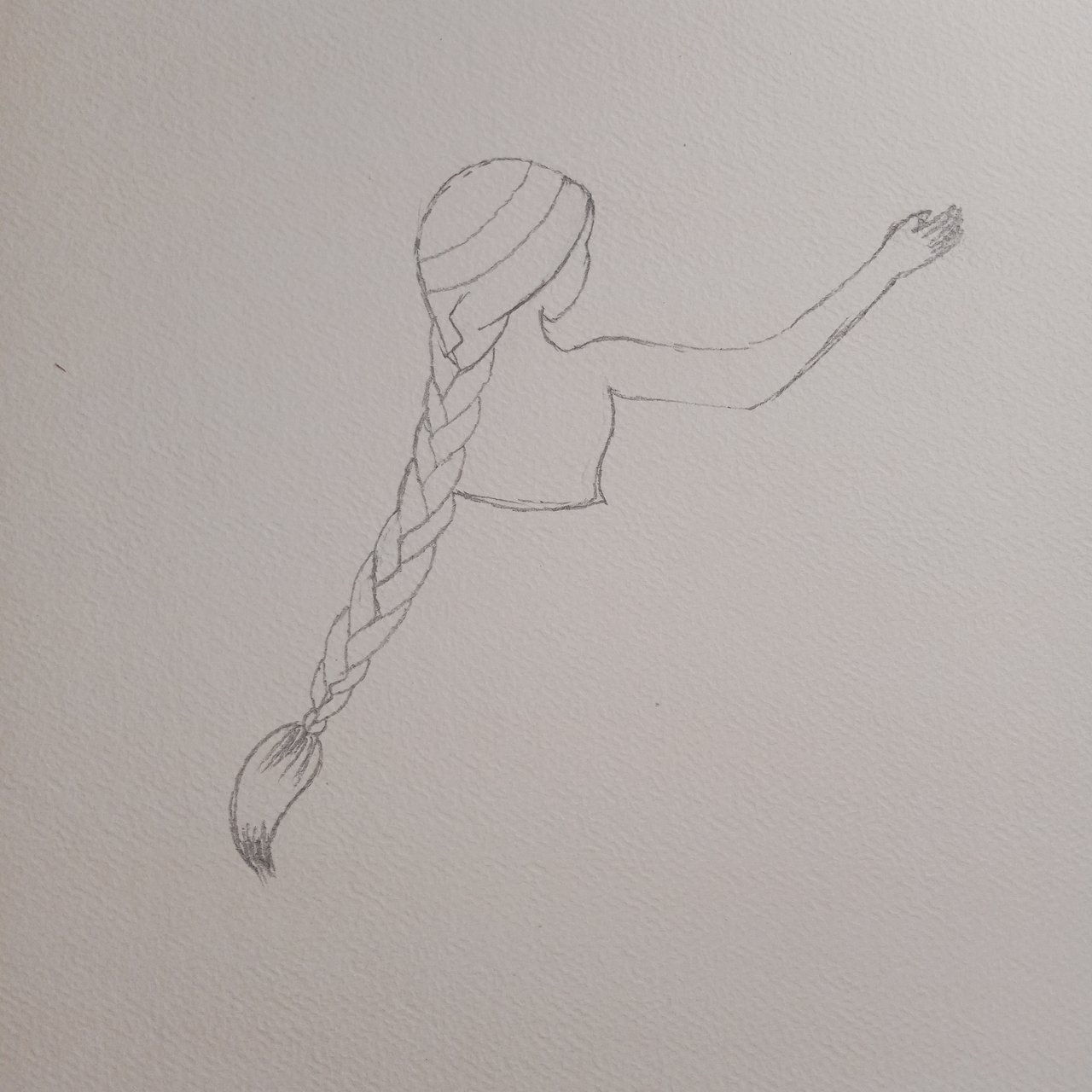 I first started my drawing with the girl's hair. First I drew the top of the girl's head. Then I started drawing the girl's beautiful long hair with a braid. I gave this girl a beautiful long hair style because I really like long hair.