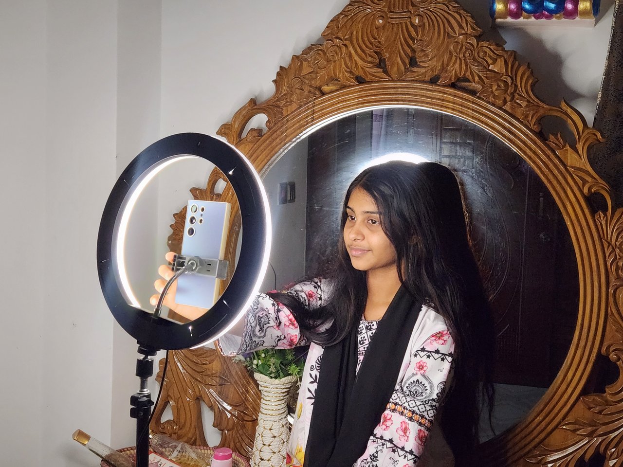 After the evening, I make a video of my niece after she gets ready. I lie down with my niece and watch her mobile phone and spend some naughty and sweet time. Then I have dinner and around ten o'clock at night I wash my hands and face and use serum on my face to freshen up. Then I prepare for sleep.