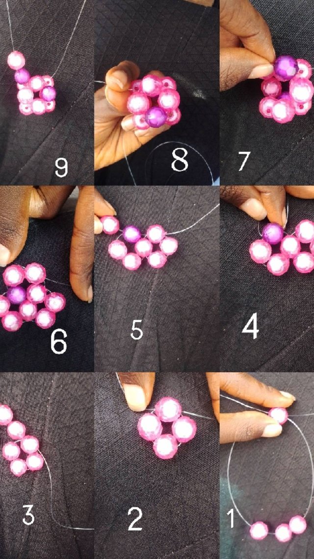 - Since it a sequence of four as mentioned earlier, all result of the lined bead must equal four. Starting with the interlocked bead, add two more beads to a side then interlock with another to the left. This adds up to four.