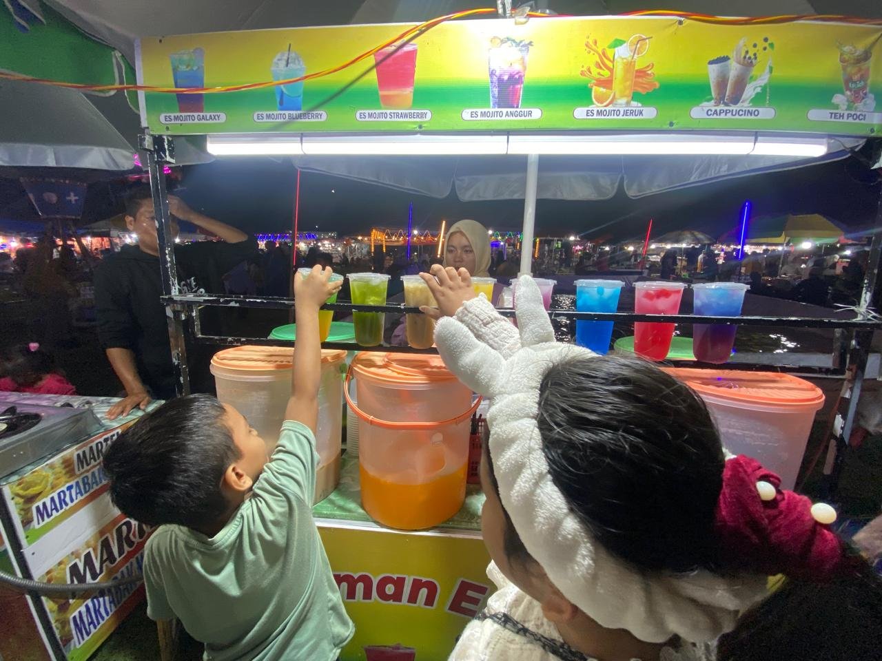 It is really lovely to take your brother and nephews to the night market and see them happy there. Although the night market is not very big, spending time with family members is always special. It is really admirable to walk around the night market with your nephew Zahrul and sister Elsa and try to keep them happy. You show your responsibility and ability to make decisions according to their needs by buying food and drinks instead of toys. After buying food and drinks, spending time with your sister and nephew by coloring pictures is a fun and educational experience.