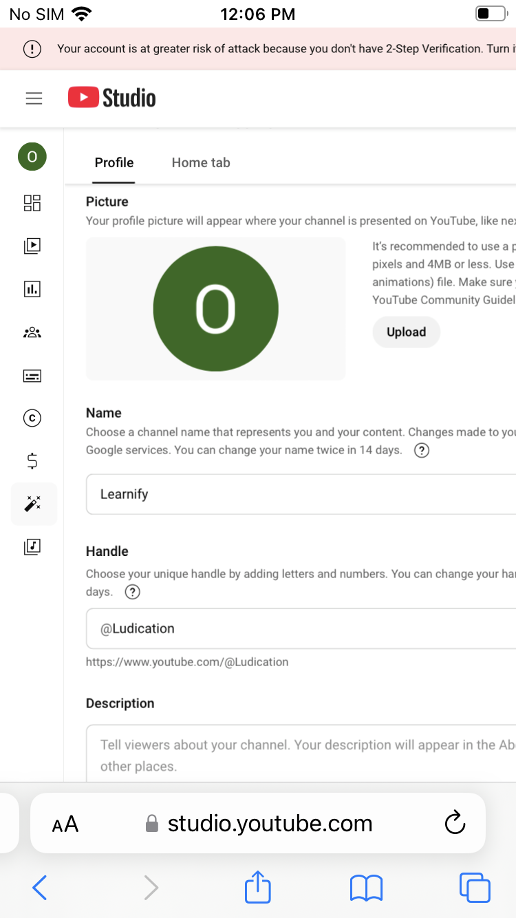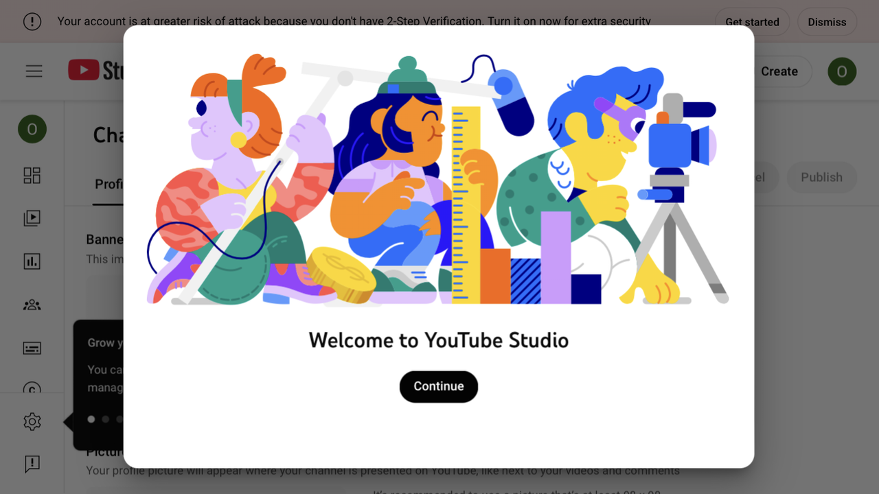 It opened into this window that looked like the channel was already created. I did not like the name and wanted to change it. So i selected the name and was taken to this youtube studio window wit option to get the YouTube studio app or continue to the online version.