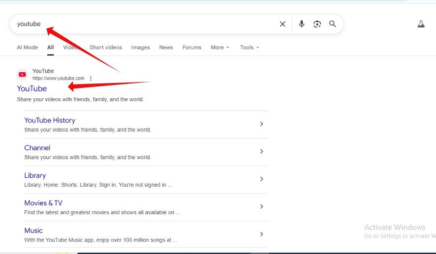 Then I searched for YouTube by typing it in the Chrome browser. I entered the YouTube link. From there I clicked on the menu with the picture on the right side. From there I clicked on the Add Account button.