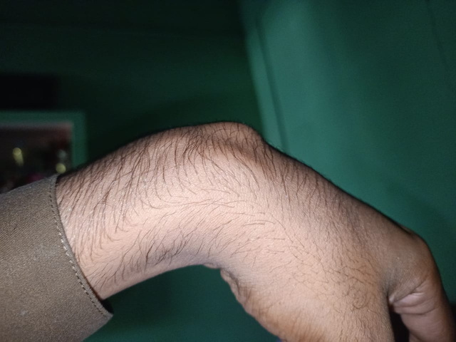 Once it happened that I was carrying a football. There was another boy ahead of me at high speed. He put his leg in front of me. When I hit his leg, I jumped and fell. When I fell, my hands went down and touched the ground, which put a lot of pressure on my wrist and caused the joint to protrude a little.