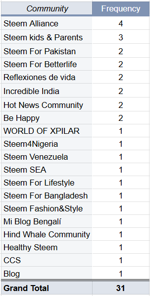 The details of curation per community in the last week are as shown in the following table:
