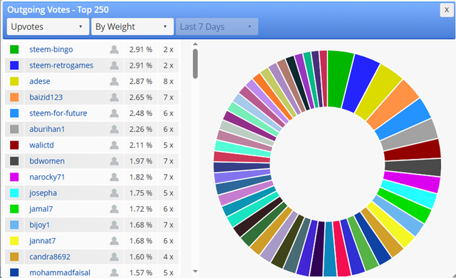 Below is a summary of the distribution of votes, taking into account the information from Steemworld.