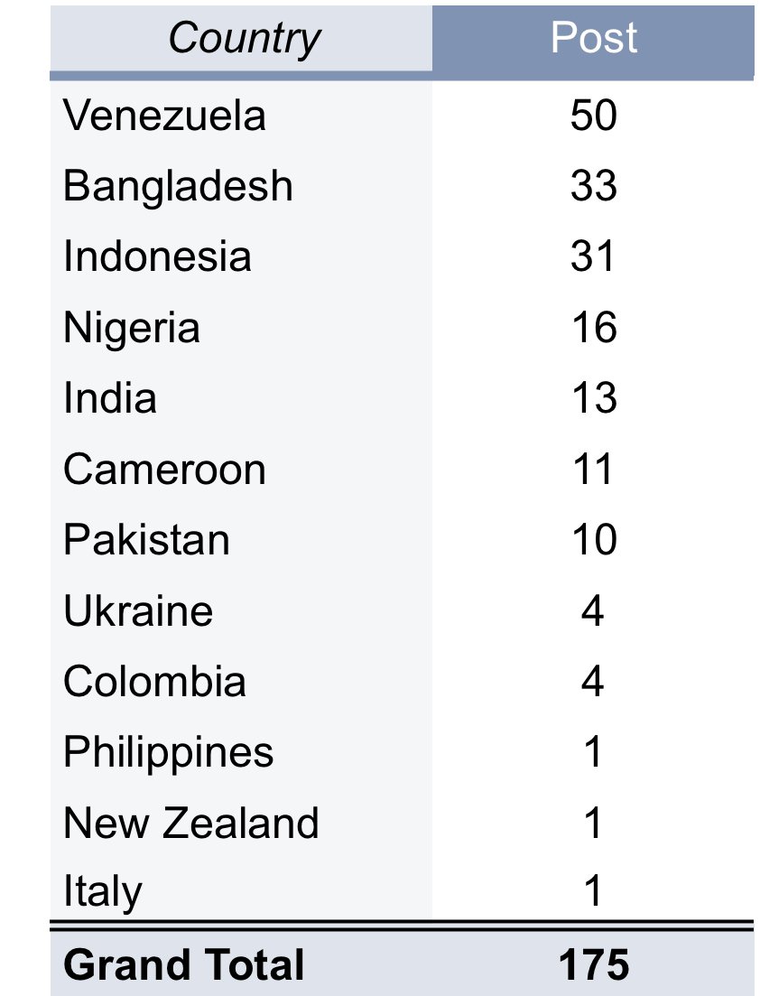 SC04 upvoted posts from 12countries.Venezuela 50 leading country ,33Bangladesh and 31Indonesia and the rest follows.