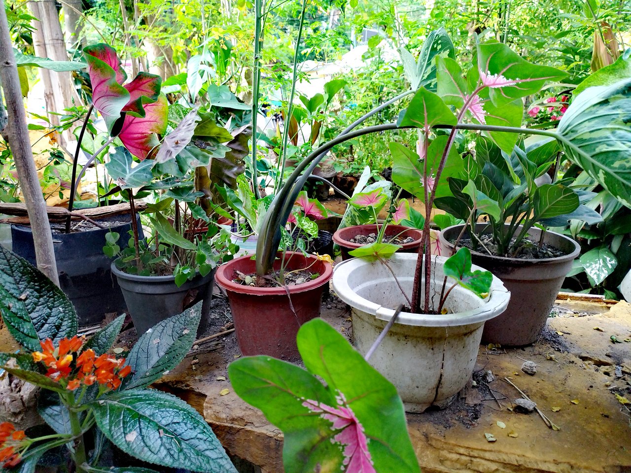 The next thing I did after washing the plates an the clothes are transferring some of my Ornamental plants somewhere safe from animals like dogs and cats. Last day I felt very sad about some of my ornamental and flowering plants because it was been damaged by dogs and cats running around the place. I put some of my Caladium plants at the top of the recycled fridge and some of my collections are also put away from the place were cats and dogs always playing and running. I started to collected different kinds of plant when the Pandemic exploded and to keep myself busy and felt not bored, collecting and caring ornamental and flowering plants is the best thing to do.