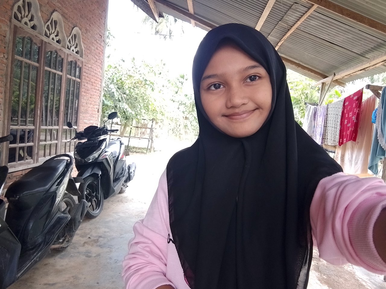 Setelah beberapa menit di jalan akhirnya saya sudah sampai di rumah dan saya mau nganti seragam sekolah habis nganti baju saya lanjut untuk pergi cuci muka karena udah kotor selesai itu saya duduk-duduk di kamar.