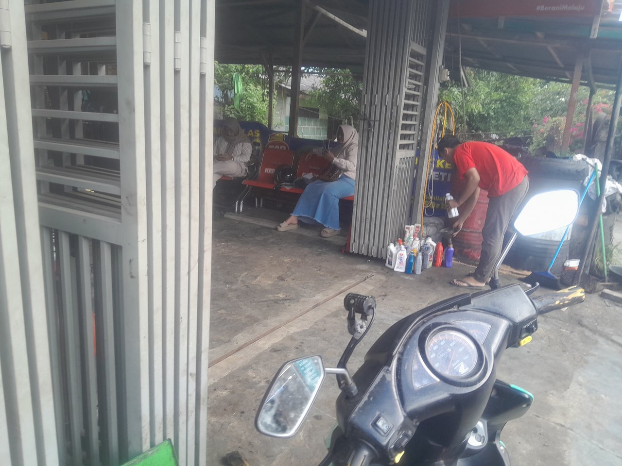 Karena kami berencana keluar sebentar, saya pun buru buru untuk menyuci piring dan menyapu lantai dulu, kemudian baru mandi, dan setelah asar kami pun berangkat, kami singgah dulu, ke spbu untuk mengisi bensin, kemudian baru ke bengkel untuk membeli gir engkol kereta ayah ojan karena udah dua hari rusak belum diperbaiki..