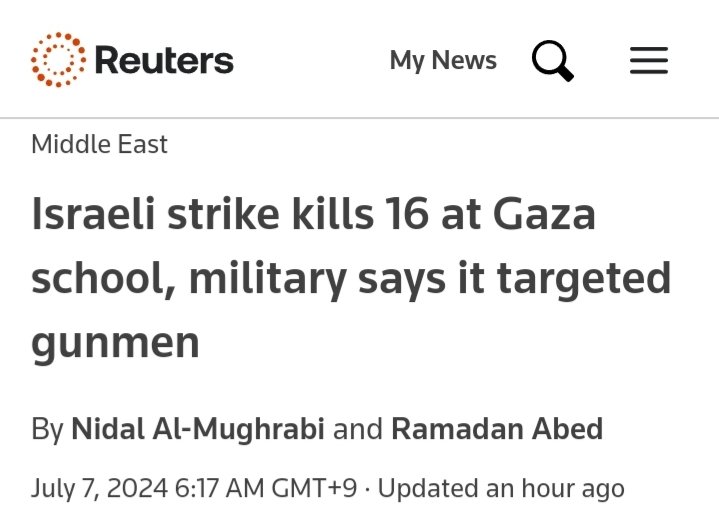 【Reuters】An Israeli airstrike on a school sheltering displaced families in Gaza killed at least 16 people, including children, and injured over 50, highlighting the severe humanitarian impact on civilians amidst ongoing conflict