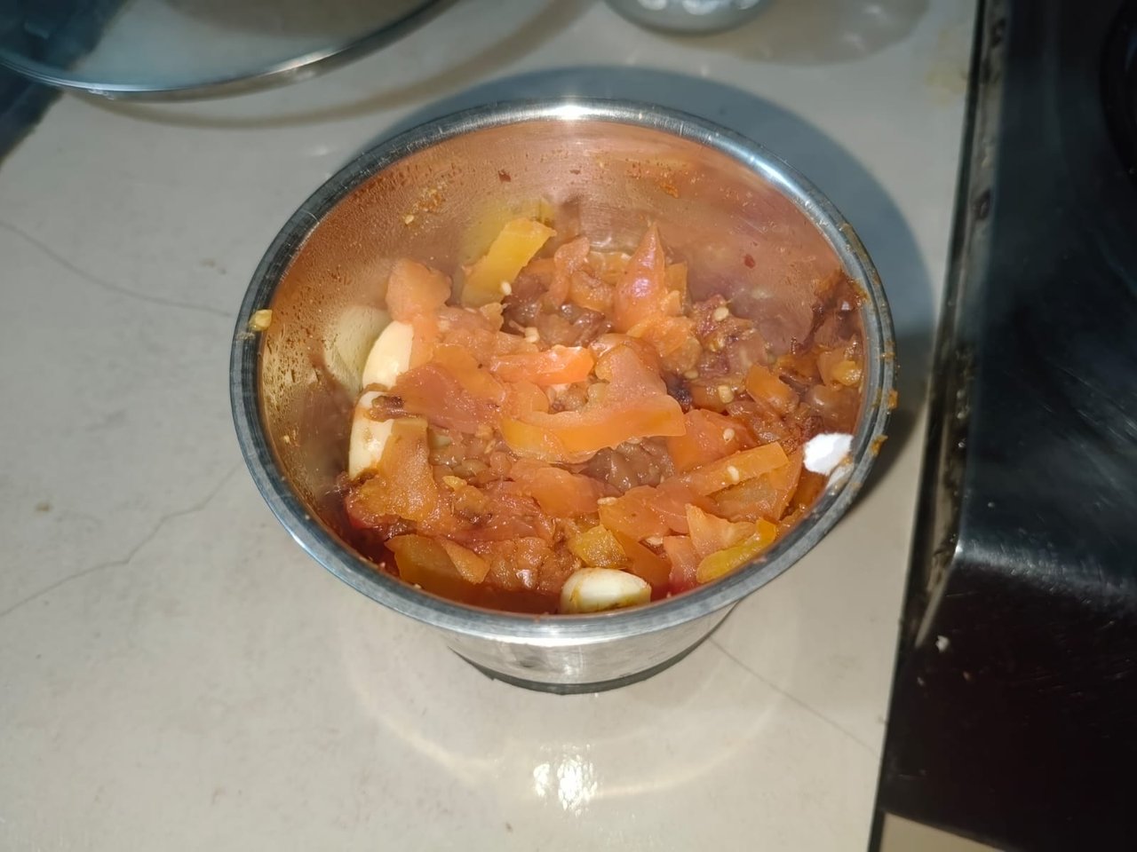 After it was cooked, I blended the garlic and tomatoes together in a blender and mixed them well.