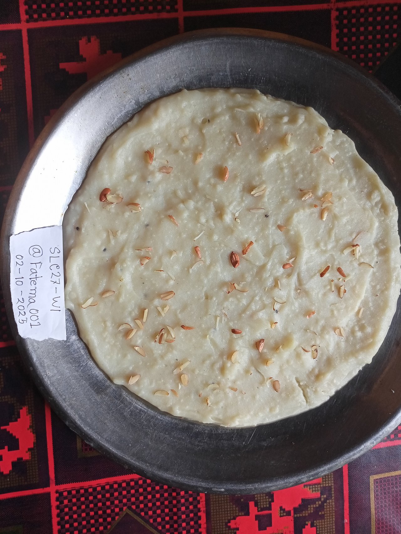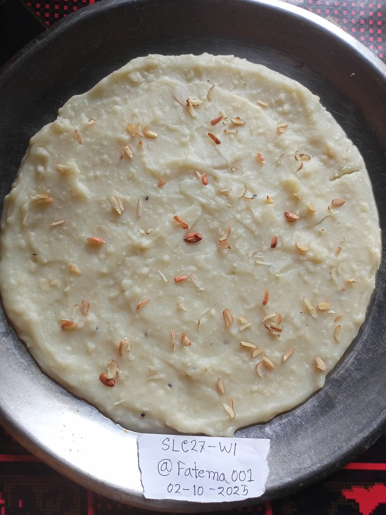Hello friends, how are you all? Today I have come to you with a delicious and healthy sweet recipe. I think sweets play a very important role in special occasions. Because we always celebrate various types of events with laughter and happiness. And we celebrate our happy moments most of the time with sweets. Sweets bring us joy and happiness. That is why sweets are very important in special occasions. Today I am presenting you with a very delicious and healthy sweet recipe made with flour and gram flour. I am trying to share it with you in a very beautiful way by writing my name and date in every step of making the sweet from the beginning to the end and in the presentation of the end.