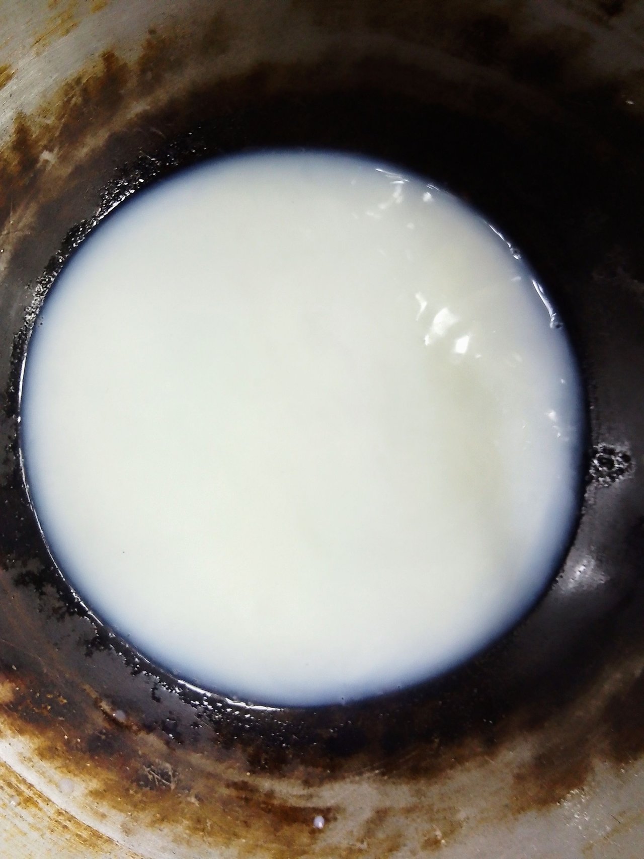 Then add the fried flour and stir well for a while. You have to stir a little too quickly here otherwise the mixture will clump. Cook like this for about five minutes.