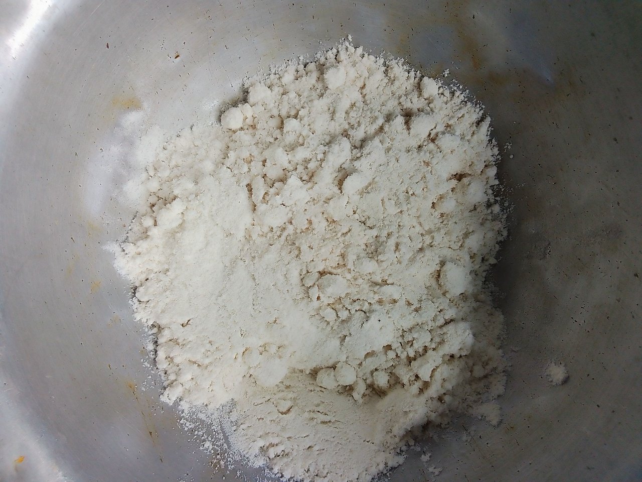 Then, when the oil was hot, I added the flour. Then, stirring it lightly, I added a little gram flour.