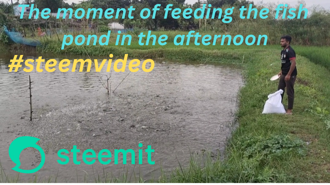 I am going to share with you today that when I was feeding the fish pond in the afternoon, my uncle captured the moment of feeding my fish through a video on my mobile camera. Actually, I always like feeding the fish pond in the afternoon. We basically have two fish ponds where we cultivate fish. Every day in the afternoon, when I go to feed the fish, I like to see the fish come to one place and eat happily. Actually, since I feed the fish at the same time every day, the fish come to a specific place and wait for the food at that time. When I go, they come and start jumping and start rushing to eat. At that moment, I like to feed the fish and see the fish.