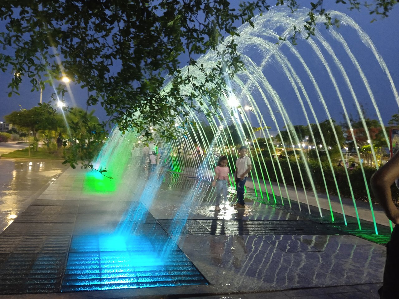 Está plaza cuenta con una hermosa iluminación que nos facilita seguir disfrutando de noche a lo natural, observando el espectáculo que nos ofrece el túnel de agua.