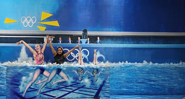 The third room featured sports-related artworks. There was also a corner with a visual illusion known as the Ames Room illusion. Unfortunately, we couldn’t take a photo together there, as there were only two of us.