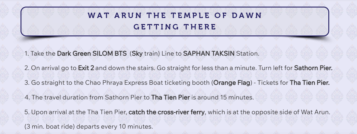 Wat Arun is about a 22-minute walk, but you’ll need to cross the Chao Phraya River by boat. Wat Arun has its own pier, so anyone can easily reach it from Terminal 21, ICONSIAM, or any other pier. It cost about 5–6 Baht to cross the river.