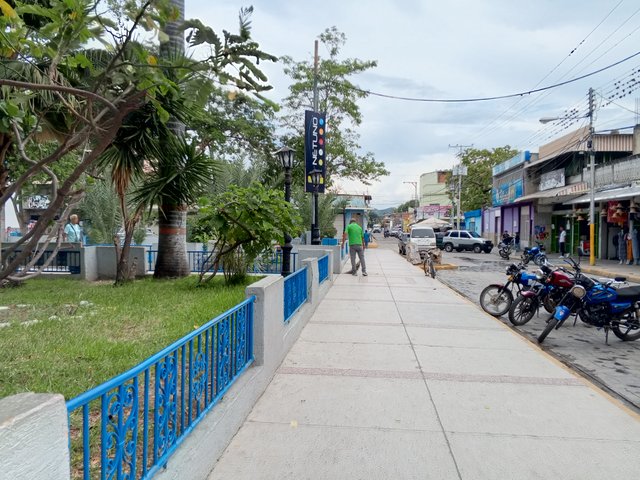 Está rodeada de algunos locales comerciales, la iglesia Nuestra señora del Carmen la principal de la ciudad, entidades financieras e instituciones gubernamentales como la casa de la cultura y la Alcaldía, está plaza es un lugar para socializar además de descanso y esparcimiento para niños que corren de un lugar a otro, una de las cosas que me gusta es que los jardines están protegido.