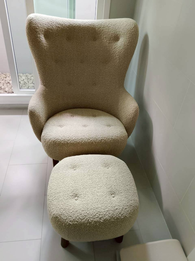 - มุมพักผ่อนในห้องนอน: จัดเป็นมุมส่วนตัวสำหรับนั่งฟังเพลงหรือพักสายตาก่อนนอน ความโค้งมนของเก้าอี้และความนุ่มของที่พักเท้าจะช่วยคลายความเหนื่อยล้าได้เป็นอย่างดี