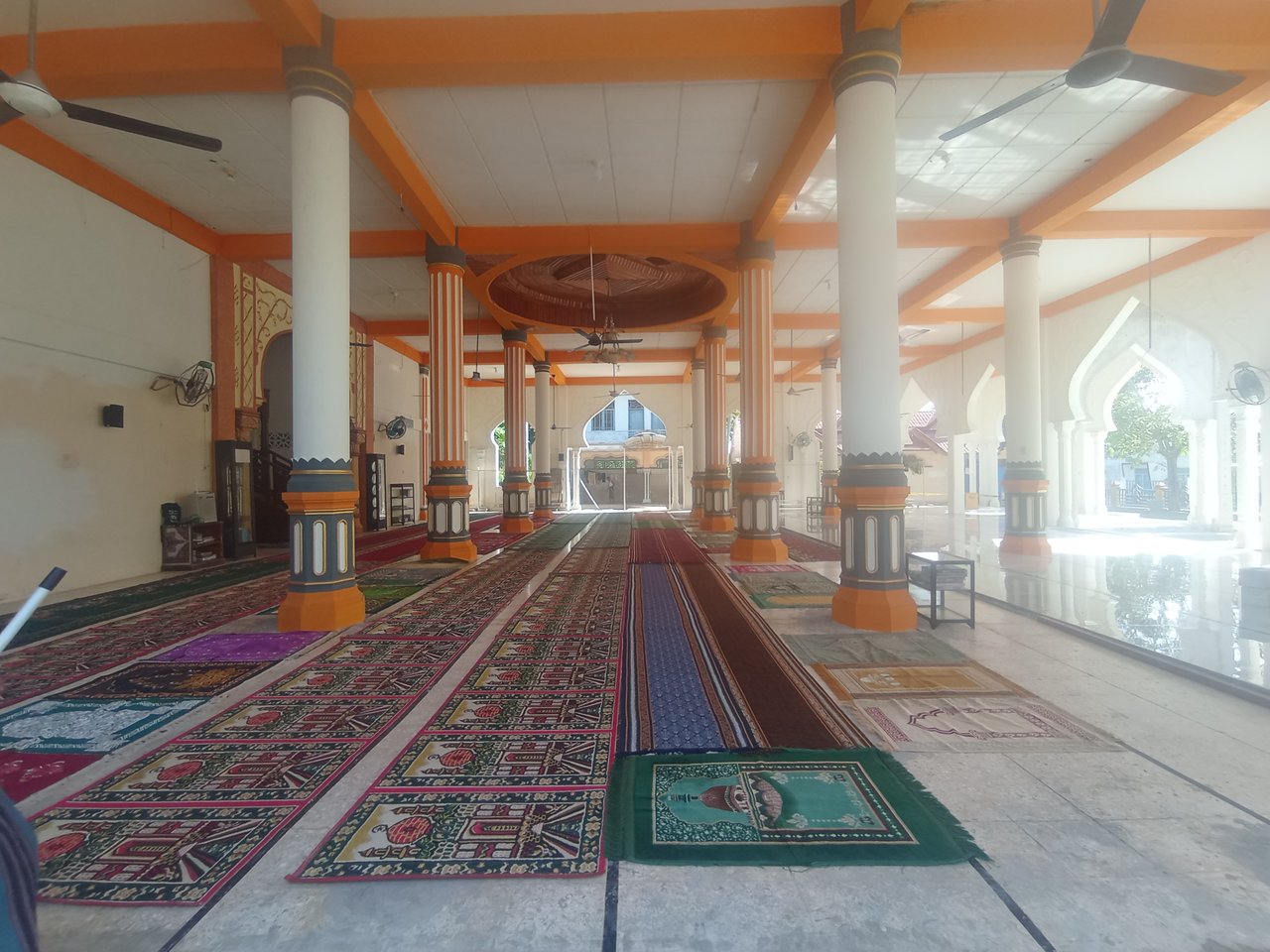 A las 9:25 a. m., fui a la mezquita para realizar la oración de la mañana. Después de rezar, ayudé a preparar la sala de oración para la oración del viernes. Al terminar, regresé a casa.