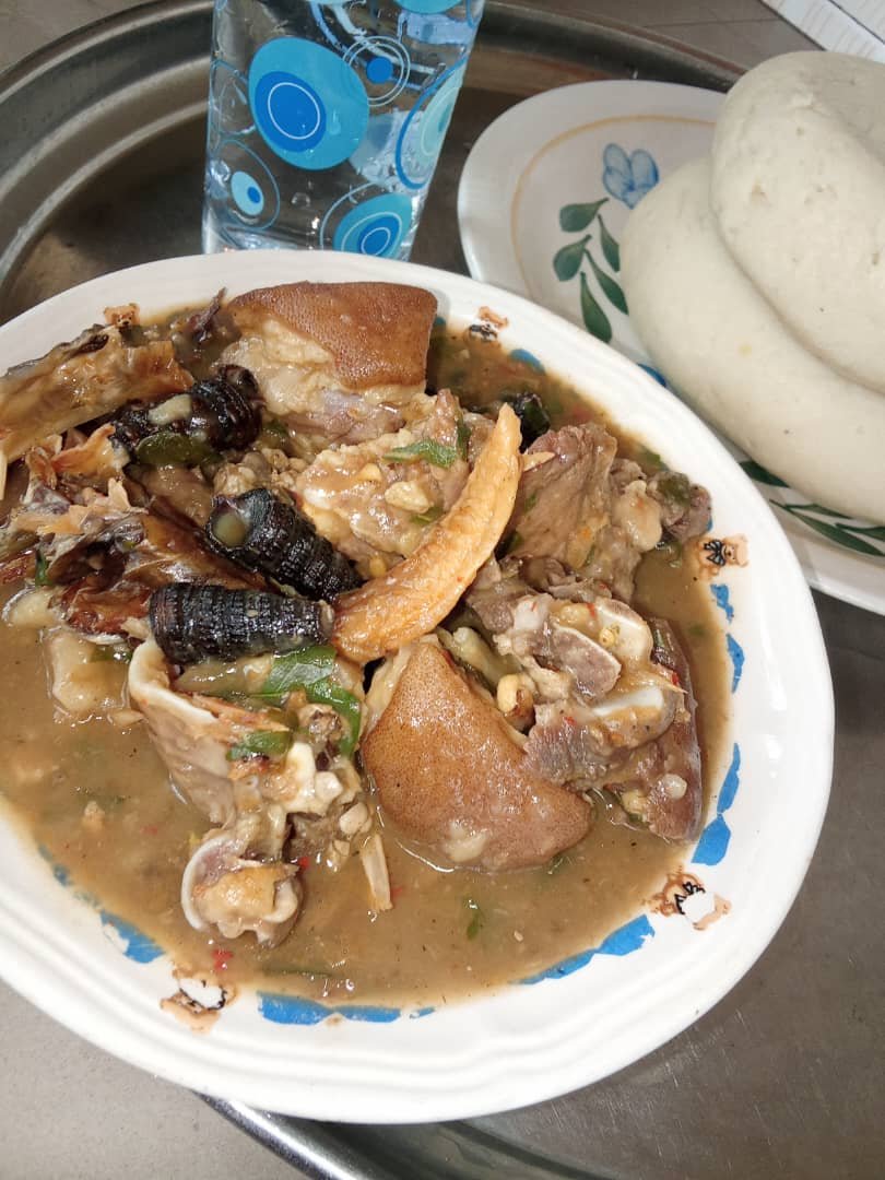 Just imagine this steaming hot yam pounded into cloud-like softness, white soup hot with pepper spice and has been somewhat thickened by flavor, the pepper stinging your throat in that way that makes tears form in the corner of your eyes but still has you reaching for a second helping. Then there is the lineup of intercontinental condiments;towel meat, goat meat, cow skin, stockfish, all producing aroma together in harmony like an orchestra of flavor.
