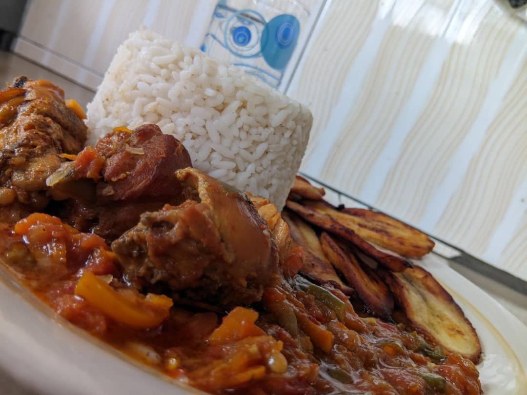 The amazing scent of fried rice fills the air, the sound of carrots, bell peppers, green beans and other vegetables sizzling together permeates through the whole house like a good orchestra", my mum walks in to the dining room with a pot full of steaming hot fried rice and complementary crusty fried chicken to set the pace for breakfast, yes that's breakfast for me and you'll definitely find me at the table where that combo is served.