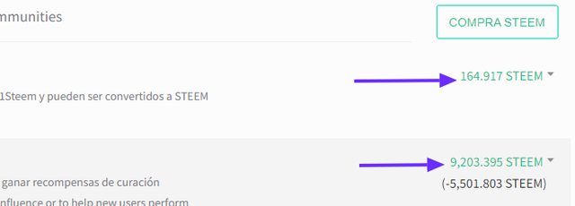 Cuando ingresamos a nuestro monedero, debemos iniciar sesión con nuestra Private Active Key; en dicha página, como se puede observar, tengo un total de 164.917 STEEM y mi Steem Power es de 9,203.395 STEEM.