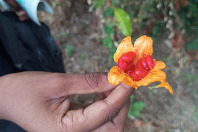 Como es una zona rural, se puede observar variedad de frutas, entre ellas la silvestre. En esta oportunidad había mucho cundeamor, también conocido como melón amargo. Su cáscara suele ser verrugosa y posee semillas muy carnosas de color rojo al madurar.