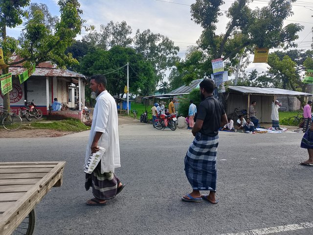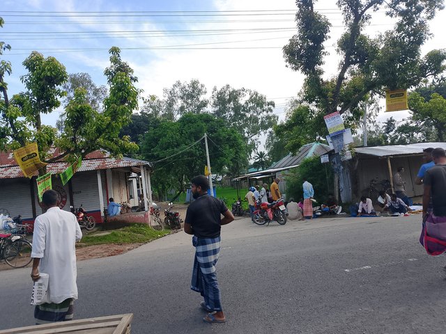 Here at a market by the roadside corner, today a seller came to sell fish. People went there to buy fish, and every day for about eight years people have been coming there to buy fish. We also went there, and after staying for a while, we saw many people buying fish and taking them home. Because of this, there was a crowd of people, and in that crowd, we left the place.
