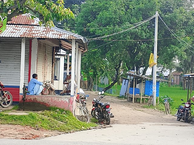 It had rained there, and because of the rain, the place looked more beautiful. People could be seen there in that spot. A large amount of rain usually happens there because the river is nearby, and from the river people catch fish and bring them to sell there.